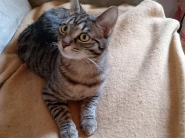 Die kleine getigerte Katzendame ist mittlerweile 15 Monate alt und ein zierliches und aufgwecktes Fräulein. Spielen ist ihr Hobby, und sie wäre als Zweitlatze bei einer ebenfalls jüngeren Katze geeignet sie hat auch gerne Streicheleinheiten und geht auf Menschen zu.
